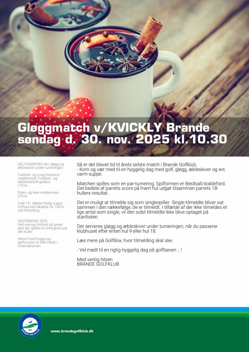 Søndag den 30. nov. kl. 10:30 inviterer Brande Golfklub til Gløggmatch, som er årets sidste turnering.